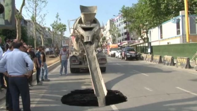 Beşiktaş Barbaros Bulvarı'nda çöken yolu doldurulma çalışmalarına başlandı.