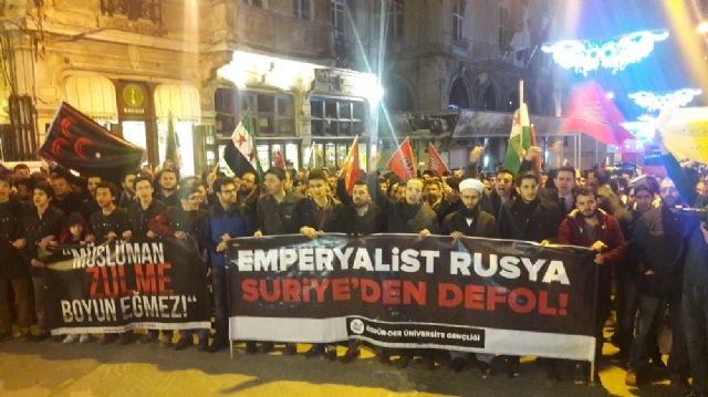 Beyoğlu İstiklal Caddesi'nde toplanan yüzlerce kişi, Suriye İdlib'te gerçekleşen kimyasal saldırıyla ilgili olarak Esad, Rusya ve İran'ı protesto etti.