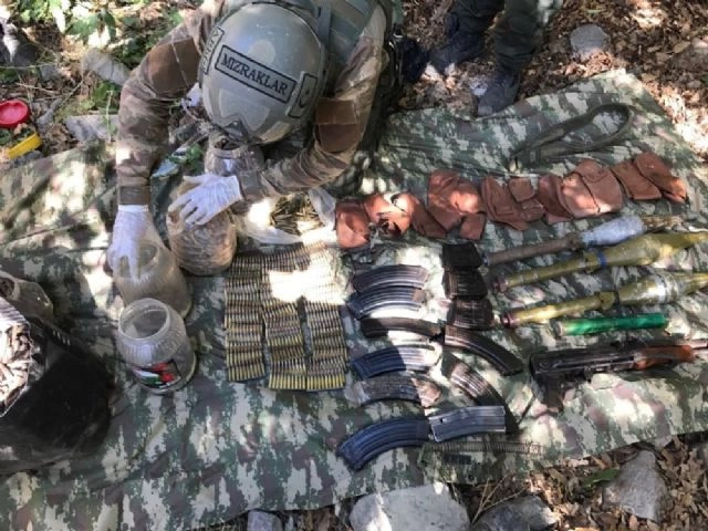 Bingöl'de terör örgütü PKK'ya yönelik devam eden operasyonlar kapsamında içerisinde Kanas keskin nişancı tüfeği, antitank roket mühimmatı, RPG-7 ve çok sayıda mühimmat bulunan 16 sığınak ile 2 depo ele geçirildi. Bingöl Valiliği, Kiğı Jandarma Komando Alay Komutanlığı'na bağlı birlikler tarafından gerçekleştirilen 'Şehit Jandarma Uzman Çavuş Lokman Dargın-88' operasyonu kapsamında 16 sığınak ve 2 depo ele geçirildiğini bildirdi.Operasyon bölgesinde tuzaklanan 2 el yapımı patlayıcının imha edildiği ifade edilen açıklamada, "Sığınaklarda yapılan aramada, 1 Kanas keskin nişancı silahı, 1 Kanas dürbünü, 1 AK-47 Kaleşnikof Piyade Tüfeği, 14 adat AK-47 Kaleşnikof Piyade Tüfeği Şarjörü, 4 bin 250 adet AK-47 Kaleşnikof Piyade Tüfeği Fişeği, 3 Antitank Roket mühimmatı, 13 RPG-7 sevk fişeği, 550 adet 5.65 MM fişek, 750 Bixi mühimmatı, 5 RPG-7 Antitank Roketi, 1 RPG-7 antipersonel roketi, 1 RPG-7 Antihava Roketi, 11 şarjör kılıfı, 1 termal silah dürbünü, 2 palaska, 85 Kanas mühimmatı, 91 Bixi mühimmatı, 3 Dragunov Keskin Nişancı silahına ait boş şarjör, 17 fünye bağlantılı EYP, 15 EYP devresi, 1 menşei tespit edilemeyen termal kamera ve bataryası, 1 EYP yerleşimini gösterir doküman, 3 EYP basma düzeneği, 190 kilogram amonyum nitrat, 250 değişik ebatta pil, 23 dolu piknik tüpü, 4 boş piknik tüpü, 1 Jeneratör, 1 adet akü, terör örgütü PKK'nın ele başı Abdullah Öcalan'ın posteri, 1 örgütsel bayrak, 1 şişme bot, çok miktarda yaşam ve sağlık malzemesi ele geçirilmiştir" denildi.(Yılmaz Atar /İHA)