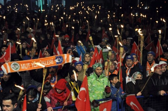 Kars Sarıkamış'ta 10 bin kişi ellerinde meşalelerle eksi 10 derece soğukta yürüyerek Allahuekber Dağları'nda şehit düşen 90 bin Mehmetçiği andı.