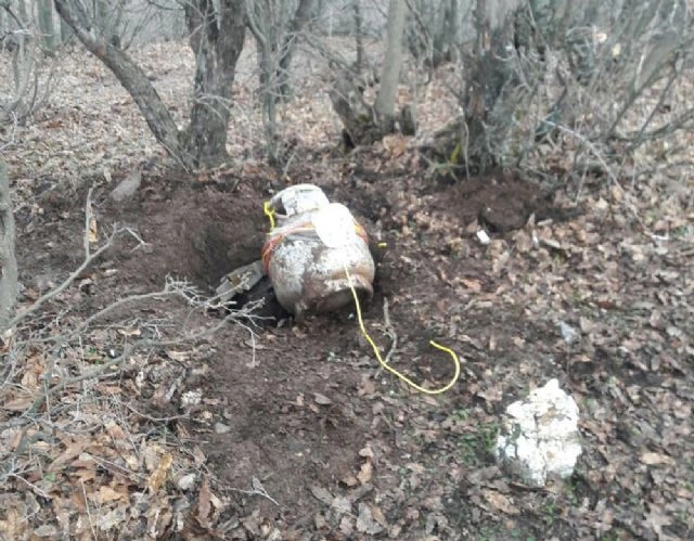 Bitlis İl Jandarma Komutanlığınca yürütülen terör operasyonlarında, 12 kiloluk tüpün içine yerleştirilmiş amonyum nitrat ve mazot ile hazırlanmış bir adet el yapımı patlayıcı (EYP) imha edildi.