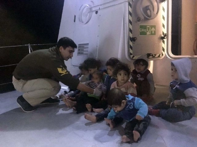 Aydın'ın Didim ilçesinde, Yunan adalarına geçebilmek için lastik botla denize açılan 29'u çocuk 49 Suriye uyruklu göçmen Sahil Güvenlik tarafından kurtarıldı. Edinilen bilgiye göre; Sahil Güvenlik Güney Ege Grup Komutanlığınca göçmen kaçakçılığının önlenmesine yönelik yürütülen çalışmalar kapsamında gece saat 02.30 sıralarında Didim Tekağaç Burnu önlerinde lastik bot içerisinde bir grup göçmen tespit edildi. Göçmenlerin bulunduğu lastik bot durdurularak içerisindeki 10'u erkek, 10'u kadın ve 29'u çocuk olmak üzere 49 Suriye uyruklu göçmen kurtarıldı.Didim Gümrük İskelesi'nden karaya çıkartılan Suriyeli göçmenlerin sağlık kontrolleri yapılarak, yiyecek ve gerekli ihtiyaçları giderildi. Göçmenler işlemleri için emniyet birimlerine teslim edildi.(Mehmet Barlas /İHA)