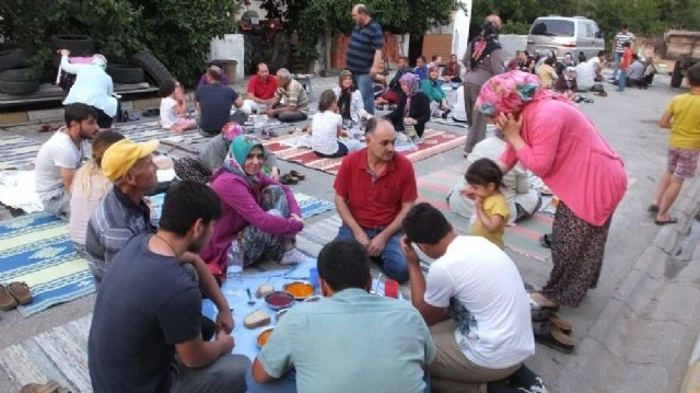 Balıkesir'in Burhaniye ilçesine bağlı Geriş Mahallesinde toplu iftar açma geleneği sürdürülüyor. Mahalledeki kadınların hazırladığı çeşit çeşit yemekler, sokağa serilen halı ve kilimlerin üzerinde kurulan yer soflarında yenirken, iftarlara çok sayıda davetli katılıyor.İlçenin Geriş Mahallesinde, İvrindi ve Balya ile Çanakkale ilçelerine bağlı köylerden gelen vatandaşlar 10 yıldır toplu iftar yapma geleneklerini sürdürüyorlar. İftar yemeklerini her gün bir aile üstlenirken, iftara mahalledeki vatandaşların yanı sıra başka mahallelerden de insanlar katılıyor. Sokakta kurulan yer sofrasında yemekler yenirken, vatandaşlar bu geleneği devam ettirmeye kararlı görünüyor. Geriş mahallesindeki iftara Belediye Başkan Yardımcısı Cemal Akkılınç ile İlim Yayma Cemiyeti Burhaniye Şube Başkanı Sadrettin Küçükkaya ile yaklaşık 150 vatandaş katıldı."ÇOK GÜZEL BİR HAYIR ZİYAFETİ"Toplu iftar geleneğinin birlik ve beraberliğe vesile olduğunu anlatan Başkan Yardımcısı Cemal Akkılınç, "Geriş mahallesinde, genellikle kırsal yörelerden gelen bu vatandaşlarımız yıllardır bu sokakta iftar yapmaktadırlar. Öz yaşamlarını yansıtan bu iftar sofraları, birlik beraberliğe vesile olmaktadır" dedi. İlim Yayma Cemiyeti Şube Başkanı Sadrettin Küçükkaya da,"Geriş mahallesinde köylerden gelen arkadaşlar köylerdeki geleneklerini yaşatıyorlar. Bizi de davet ettiler. Davete icabetten dolayı bizde katıldık" dedi. Halit Ceylan ise,"Manyas'tan geldim. Dünürlerim davet etti. Eski adetler eski gelenekler aynen devam ediyor. Çok güzel bir hayır ziyafeti oluyor" dedi. Mukaddes Ceylan'da, "Kadınlar toplanıp el birliği ile yemekleri yapıyoruz. Akşam olduğu zamanda iftarda gelen misafirlere ikram ediyoruz. Bu bizim adetlerimizdendir. Böyle sürdürüp gidiyoruz" diye konuştu. Ramazan Avcı ise, "Bu akşam iftar sırası bendeydi. Biz bu adetleri devam ettiriyoruz. Komşularımıza ve akrabalarımızı davet ediyoruz. Gelenlerden Allah razı olsun" ifadelerini kullandı(Fatma Talay / İHA)