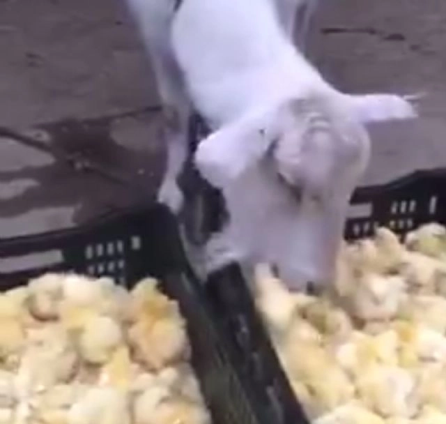 Civciv yiyen keçi görüntülere böyle yansıdı.Çin'de civcivlerle dolu kasaların başında bir keçinin olduğu görülüyor. İnatçılığıyla bilinen hayvan, kasadan ağzına aldığı civcivleri çiğneyerek mideye indiriyor. Bu ilginç anlar görüntülere de anbean yansıyor.
