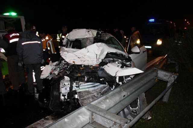 İzmir-Aydın otoyolunda otomobilin kamyona çarpması sonucu meydana gelen kazada 3 üniversite öğrencisi hayatını kaybetti, 1 kişi ağır yaralandı.Edinilen bilgiye göre, İzmir Dokuz Eylül Üniversitesi Hukuk Fakültesi'nde son sınıf öğrencisi olan 4 arkadaş, kiraladıkları 35 JJ 651 plakalı araç ile arkadaşlarını ziyaret etmek için Aydın'a doğru yola çıktı. Sefa Ş. (23) idaresindeki otomobil, Aydın'ın Germencik ilçesi yakınlarına geldiğinde yağışlı havayla birlikte oluşan yoğun siste önünde seyreden Hüseyin A'nın kullandığı 10 P 3939 plakalı yüklü kamyona arkadan çarptı. Çarpmanın etkisiyle kontrolden çıkan otomobil, orta bariyerlere çarparak durabildi.Yoldan geçen diğer sürücülerin haber vermesi üzerine olay yerine 112 Acil Servis, itfaiye, jandarma ve polis ekipleri sevk edildi. Araçta bulunan üniversiteli gençlere müdahale eden sağlık ekipleri otomobilde yolcu olarak bulunan Yasin Malgaç (23), Enes Yayla (23) ve İbrahim Kal'ın (23) öldüğünü belirledi. Ağır yaralanan sürücü Sefa Ş. ise, olay yerinde yapılan ilk müdahalesinin ardından Aydın Devlet Hastanesi'ne kaldırıldı.ACI HABERİ KOMUTAN VERDİKazada hayatını kaybeden üniversite öğrencilerinin hurdaya dönen otomobilde sıkışan cansız bedenleri, kaza kırım ekibinin yaklaşık 2 saat süren çalışmalarının ardından çıkarılarak otopsi için Germencik Devlet Hastanesi morguna kaldırıldı. Kazada ölen gençlerin ailelerine ulaşan jandarma komutanı, ailelere sadece çocuklarının kaza yaptığını ve yoğun bakımda olduklarını söyleyebildi.Kazayı haber alarak olay yerine gelen arkadaşları, gençlerin arkasından gözyaşı döktü. Kamyon sürücüsü Hüseyin A. gözaltına alınırken, ağır yaralanan sürücü Sefa Şahin'in hayati tehlikesinin devam ettiği öğrenildi.(Mehmet Barlas - Onur Durmuş/İHA)