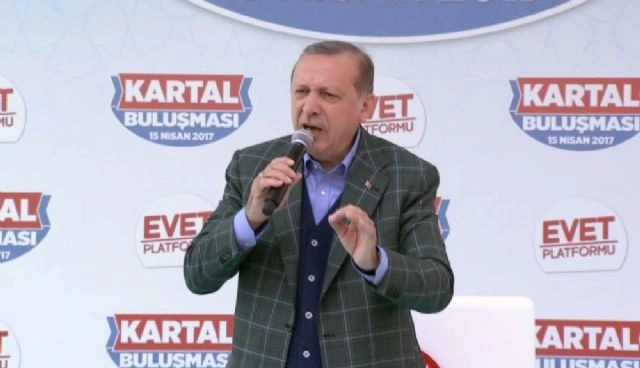 Cumhurbaşkanı Recep Tayyip Erdoğan bir dönem Osmanlı'ya 'hasta adam' yakıştırması yapıldığını hatırlatarak, "Bugünün hasta adamı 'Avrupa Birliği'. Ekonomisi küçülüyor, borcu artıyor, ticaret hacmi daralıyor" dedi.Cumhurbaşkanı Recep Tayyip Erdoğan, Kartal'da düzenlenen mitingde vatandaşlarla buluştu.Mitingde konuşan Erdoğan 'hayır' kampanyasına destek veren AB üyesi ülkeleri eleştirerek, "Size ne ya. Size ne. Yani Avrupa'nın milletvekillerine ne. Parlamentosunun önünde Erdoğan'ın resmi. Şakağına silah dayatılmış. 'Erdoğan'ı öldürün' diyor. Nerede bu İsviçre Parlamentosu? Demek onlara dahi bu korkuyu vermişiz. Çünkü biz düşmana korku, dosta muhabbet erleriyiz. Nerede İsviçre'nin yönetimleri? Niçin bu teröristlere orada haddini bildirmiyor. Bunların ne olduğunu anlayın. Bunların dostluğuna güvenmeyin. Bakıyoruz AB üyesi ülkeler. Vatikan'a gittiler. Vatikan'da ne işiniz var. Vatikan AB üyesi mi? Değil. Bunların içinde Protestan var, Ortodoks var, ateist var. Bunların hepsi Katolik olan Vatikan'a gidiyor. Niye. Hepsi diziliyorlar nasihatlerini aldılar. Papa nasihatte bulundu. Ondan sonra kuzu kuzu ayrıldılar. Çünkü bunlar tek millet. Kimse bize 'şöyleydi, böyleydi' demesin. Külahımıza anlatsınlar. 54 yıldır bu ülkeyi oyaladılar. İşte 16 Nisan bunun dönüm noktası olacaktır" diye konuştu."ETA GİBİ YAPMADIKLARI SÜRECE BU ÜLKEDE ONLARA YAŞAM HAKKI YOK"AB'nin Türkiye'nin yeni sistemle daha da güçlenecek olmasından rahatsız olduğunu söyleyen Erdoğan, "54 yıldır bizi kapılarında beklettiler. Şimdi çekiniyorlar. Demokratik ve ekonomik kriterler bakımından ülkemizle mukayese edilemeyecek devletleri üye yaparken, Türkiye'yi niye geri tuttuklarını iyi biliyoruz. Kopenhag kriterleri olmadı, biz Ankara kriterleri ile yola devam ederiz. Yarın bunun da dönüm noktası olacak. Ekonomide zaten AB ortalaması büyümede 1.8. Türkiye 2.9. Türkiye yarışta öne çıkıyor. Korkunun ecele faydası yok bunu da bilsinler. Türkiye bu meseleyi öyle ya da böyle çözecek. Avrupa'nın bizimle sorunu halk oylamasındaki tavrı değil, asıl sorun AB üyelerinin bir bölümünün terör örgütleri ile mücadelemizden rahatsız olması. Açtıkları çukurlara bu teröristleri gömmeye başladık ya, rahatsızlık burada geliyor. 20 ayda yaklaşık 11 bin teröristi etkisiz hale getirdik. Bu onları rahatsız ediyor. Ya silahları gömecekler, ya da ülkeyi terk edecekler. ETA gibi yapmadıkları sürece bu ülkede onlara yaşam hakkı yok. Bu milleti parçaladılar, bu ümmeti parçaladılar, artık bunlara tahammül yok. Bedelini ödeyecekler" şeklinde konuştu."ŞİMDİ 'BU İŞİ ULUSLARARASI MAHKEMEYE TAŞIMAYIN' DİYE HABER GÖNDERİYORLAR"Avrupa'da Türk bakanlara yönelik yapılanları hatırlatan Cumhurbaşkanı Erdoğan, "Sınır kapılarını bakanlarımıza kapıyorlar. Bayan bakanımızı arabanın içine mahkum ediyorlar. Toplanmış olan vatandaşlarımızın üzerine atlarını itlerini salıyorlar. O itler orada kardeşimizin baldırından adeta parça kopardı. Şimdi bu işi uluslararası mahkemelere taşımayın diye haber gönderiyorlar. Nerede adaletiniz, nerede hukuk anlayışınız. Böyle olmayacak. Yaptıklarınız yanınıza kar kalmayacak. Biz Avrupa'nın neresinde olursa olsun benim bir vatandaşım varsa, onun hakkını sonuna kadar korumak görevimdir. Arayacağız, araştıracağı, ne gerekiyorsa onu yapacağız. Bunların artık ne bize ne de başka bir millete söyleyecek sözleri kalmamıştır. Tüm itibarlarını yitirmişlerdir. Biz demokrasiyi, insan haklarını, özgürlükleri onlar istediği için değil kendi vatandaşımızı buna layık olduğu içini savunuyoruz. Biz demokrasiye yaklaştıkça, onlar uzaklaşıyorlar" ifadelerini kullandı."BUGÜNÜN HASTA ADAMI AVRUPA BİRLİĞİ"Erdoğan Avrupa ülkelerinin Türkiye'ye her yol ve yöntemle saldırdığını vurgulayarak şunları söyledi:"Tüm saldırılara rağmen biz ayakla kaldıkça onları gücü tükeniyor. Bir asır önce bunlar Osmanlı'ya 'hasta adam' diyorlardı. Bugünün hasta adamı 'Avrupa Birliği'. Ekonomisi küçülüyor, borcu artıyor, ticaret hacmi daralıyor. Şu anda AB üyesi komşumuz Yunanistan Almanya'nın ona verdiği borç 400 milyar avro. Türkiye'nin böyle bir derdi var mı. IMF'e borcumuz yok"Türkiye'nin şu anda G 20 üyesi olduğunun altını çizen Erdoğan, hedefin dünyanın en büyük ilk 10 ülkesi arasına girmek olduğunu kaydetti.7 Haziran seçimleri sonrası terör örgütlerinin saldırılarını unutmadıklarını söyleyen Erdoğan, "15 Temmuz da bu fotoğrafın bir parçasıdır. Hiçbir şey olmamış gibi yolumuza devam etmemiz mümkün değildir. Birileri şimdi 'bu değişikliğin ne gereği vardı' diyorlar. Asıl şimdi bu reformun tam zamanı. Keşke bu sisteme 70 li yıllarda geçip ve arkasından gelen darbeyi yaşamasaydık. Keşke bu sisteme 90'lı yıllarda geçip, ağır kayıplara maruz kalmasaydık. Şartlar el vermedi, olmadı. Şimdi tam zamanıdır" dedi.CHP Lideri Kemal Kılıçdaroğlu'na yönelik eleştirilerde de bulunan Erdoğan, 15 Temmuz gecesi havalimanındaki görüntülerini hatırlatarak şunları söyledi:"O gün bugün oldu bir şey konuşamadın. Söylüyorum sana hala cevap veremedin. Diyordun ki 'ilk defa tankların önüne ben çıkarım'. Niye çıkamadın. Niye kaçtın. Bizim üzerimizden F16'lar uçuyordu. Biz damadım, eşim, kızım, torunlarım hep beraber vatandaşlarımızla birleştik. Biz yola kefenlerimizle çıktık. Aramızdaki fark bu Kılıçdaroğlu. Sizin bu ülkede dikili ağacınız yok. Sizin bu millet için derdiniz yok. Yapacak bir şeyiniz de yok. Utanmadan darbeyi bizim örtbas ettiğimizi söylüyor. Bu adam yalan makinesi. Şu anda cezaevlerinde bu kadar asker, polis, sivil var. Bunları oraya kim tıktı. Bunları biz bütün emniyet güçlerimizle beraber yakalayarak yarg