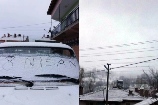 Bursa'nın Keles ilçesine nisan karı yağdı. Keles'in Baraklı Mahallesi'nde ikamet eden vatandaşlar, sabah sabah kar sürprizi ile karşılaştı. Karşılaştıkları manzara karşısında şaşıran vatandaşlar, nisanda kar keyfi yaşadı. Araçların üzerleri ve evlerin çatılarının kar tuttuğu görüldü.(Zafer Peker/İHA)