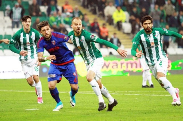 Spor Toto Süper Lig 27. haftasında Bursaspor sahasında, Kardemir Karabükspor ile karşı karşıya geldi. Mücadele Bursaspor'un 3-0 üstünlüğü ile sona erdi. Maçtan dakikalar 9. dakikada Behich'in sol kanattan pasında ceza sahası içinde müsait pozisyonda topla buluşan Batalla'nın vuruşunda meşin yuvarlak üstten dışarı gitti.11. dakikada Cristobal Jorquera'nın kullandığı köşe vuruşunda top kaleci Ahmet Şahin'de kaldı.21. dakikada sağ taç çizgisi üzerinden kazanılan serbest vuruşta topun başına geçen Bliznichenko'nun vuruşunda meşin yuvarlak kaleci Harun'da kaldı.41. dakikada Joshua John'un sol kanattan arka direğe ortasında Sercan Yıldırım topu kafayla Cristobal Jorquera'ya indirdi. Jorquera'dan seken top Batalla'nın vuruşunda auta gitti.48. dakikada kullanılan köşe vuruşunda yükselen Yatabare'nin vuruşu az farkla direğin üzerinden auta çıktı.52. dakikada John'un ceza sahasına gönderdiği topa boş pozisyondaki Batalla iyi vuramayınca Bursaspor mutlak golden oldu.55. dakikada Batalla'nın pasında topla buluşan Sercan'ın vuruşunu Kaleci Ahmet Şahin son anda kornere çeldi.56. dakikada Merter'in ceza sahasına kafa ile gönderdiği topta dokunan Kubilay Kanatsızkuş, topu Ahmet Şahin'in yanından ağlarla buluşturdu. 1-090. dakikada Dany Nounkeu'nun geri pasında kalecinin hatasını değerlendiren Sercan Yıldırım topu boş kaleye gönderdi. 2-090+3. dakikada defansın uzun topunda defansın arasına giren Aziz Behich takımına penaltı kazandırdı. Topun başına geçen Erdem Özgenç golün sahibi oldu. 3-0Stat: Timsah ArenaHakemler: Yaşar Kemal Uğurlu xx, Serkan Çimen xx, Samet Çiçek xxBursaspor: Harun xx, İsmail xx, Şamil xx, Aziz Behich xx, Ertuğrul Ersoy xx (Erdem Özgenç dk. 58 xx), Joshua John xx, Batalla xx (Bilal Kısa dk. 85 ?), Jorquera xx (Ricardo Faty dk. 65 x), Sercan Yıldırım xxx, Merter Yüce xx, Kubilay Kanatsızkuş xxxYedekler: Mert Günok, Tomas Sivok, Onur Atasayar, Sinan BakışTeknik Direktör: Mutlu TopçuKardemir Karabükspor: Ahmet Şahin xx, Andre Poko xx, Dany Nounkeu xx, Valerica Gaman x, Paul Papp xx, Andrey Bliznichenko x, Dejan Lazarevic xx (İlhan Depe dk. 77 x), Ceyhun Gülselam x, Skulason xx, Serdar Deliktaş xx (Cristian Tanase dk. 60 x), Yatabare xYedekler: Oleksandr Rybka, Osman Çelik, Mahmut Akan, Barış Başdaş, Fatih Atik,Teknik Direktör: Zoran BarisicGoller: Kubilay Kanatsızkuş (dk. 57), Sercan Yıldırım (dk. 90), Erdem Özgenç (dk. 90+3 pen.) (Bursaspor)Sarı kartlar: Sercan Yıldırım, Batalla, Ertuğrul Ersoy (Bursaspor), Valerica Gaman, Dany Nounkeu, Cristian Tanase, Paul Papp, Andre Poko (Kardemir Karabükspor)(Mesut Alan - Samet Doğru - Abdullah Çibir/İHA)