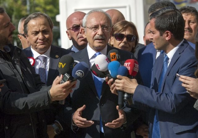 CHP Genel Başkanı Kemal Kılıçdaroğlu, Deniz Baykal'ın sağlık durumuna ilişkin, "Düne göre iyiye doğru bir gidiş var. Bütün dualarımız Deniz Bey ile birlikte. İnşallah bir an önce sağlığına kavuşur ve tekrar parlamentodaki görevine dönmüş olur" dedi.CHP Lideri Kemal Kılıçdaroğlu, 19 Ekim 'Muhtarlar Günü' dolayısıyla Muhtarlar Konfederasyonunu ziyaret etti. Kılıçdaroğlu, ziyaret sonrası basın mensuplarına açıklamada bulundu."MUHTARLAR DEMOKRASİNİN TEMEL TAŞI"Muhtarların demokrasinin temel taşı olduğunu söyleyen Kılıçdaroğlu, şunları kaydetti:"Türkiye Muhtarlar Konfederasyonu Başkanımızı ziyaret ettim. Muhtarlarımız demokrasinin temel taşıdır. Onların yetkilerimin biraz daha artırılıp güçlendirilmesi gerekir. Bu taleplerimi de dile getirdim. Onlar da kendi sorunlarını bana aktardılar. Önümüzdeki günlerde parlamento da bu sorunları ben ve milletvekili arkadaşlarım dile getirecekler."Eski CHP Genel Başkanı ve Antalya Milletvekili Deniz Baykal'ın sağlığına ilişkin bilgi veren Kılıçdaroğlu, "Deniz Bey'in sağlık konusu ile ilgili hastane tarafından bilgilendiriliyoruz. Rektör her gün bilgi aktarıyor. Düne göre iyiye doğru bir gidiş var. Bütün dualarımız Deniz Bey ile birlikte. İnşallah bir an önce sağlığına kavuşur ve tekrar parlamentodaki görevine dönmüş olur" ifadesini kullandı."SEÇİM İLE GELEN SEÇİM İLE GİDER"İstifası istenen belediye başkanları ile de ilgili açıklama yapan Kılıçdaroğlu, şunları aktardı:"Milli irade diyoruz. Milletin iradesi diyoruz. Seçim ile gelen seçim ile gitmeli diyoruz. Bunun dışındaki bütün yolları doğru bulmuyorum. Bir kişi seçim ile gelmişse on makamından edecek kişi ise, ona oy veren vatandaşlar olması lazım. Bu tür yaklaşımları doğru bulmadığımı daha öncede ifade etmiştim. Bu sadece AK Partili belediye başkanları için değil bütün belediye başkanları için geçerli bir kural. Varsa bir yolsuzluğu, usulsüzlüğü, bir yasa dışı varsa İçişleri Bakanlığı gereğini yapıyor. Onun dışında insanları zorla istifaya zorlamayı doğru bulmuyorum, demokratik de bulmuyorum, ahlaki de bulmuyorum.""TÜRKİYE'NİN BÖLGEDE ARZU ETTİĞİ AĞIRLIĞI YOK"Türkiye'nin Irak ve Suriye operasyonunu değerlendiren Kılıçdaroğlu, "Orta Doğu bataklığına Türkiye'nin girmemesi gerektiğini defalarca dile getirdim. Bugün geldiğimiz noktada Türkiye'nin bölgede arzu ettiği ağırlığı yok. Eğer bu süreç iyi değerlendirilebilirse, sağlıklı ve tutarlı bir strateji oluşturulabilirse, Irak, İran ile ortak işbirliği gerçekleştirilebilirse bölgede kan dökülmeden sorun aşılabilir diye düşünüyorum. Bir Arap, Kürt çatışması bölgeye büyük zarar verir. Bölge haklarının Kürt olsun, Arap olsun, Türkmenler olsun açlığa mahkum edilmesini asla doğru bulmayız. Oralarda yaşayan insanları özellikle siviller çok ciddi sorunlar ile karşı karşıya. Yeri ve zamanı geldiğinde Türkiye o bölgeye el atmalı o insanlara yardım yapmalıdır" dedi.Kemal Kılıçdaroğlu, basın mensuplarına açıklama yapmasının ardından temizlik görevlileri ile hatıra fotoğrafı çektirdi.(Ömer Çetin - Mustafa Apaydın/İHA)