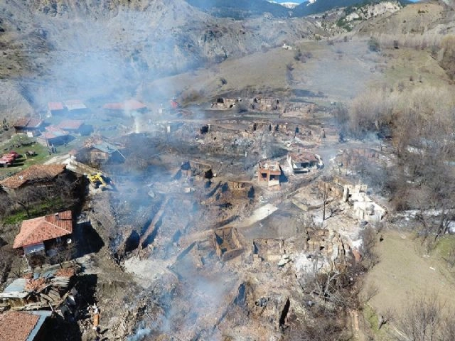 Çankırı'nın Ilgaz ilçesi Serçeler köyünde bir evde çıkan yangında alevlere teslim olan köy, drone ile havadan görüntülendi.
