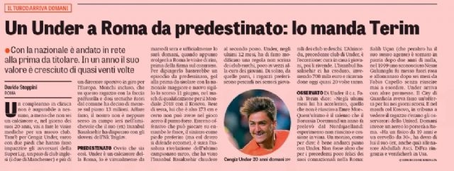 Medipol Başakşehir'in genç yıldızı Cengiz Ünder'in transferi konusunda İtalyan takımı Roma'yla 13 milyon Euro karşılığında anlaşma sağlaması, İtalyan spor medyasında geniş yer buldu.