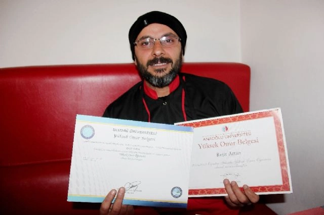 37 yaşındaki 2 çocuk babası Reşit Artan, cezaevinde önce liseyi, ardından da iki üniversite bitirdi.2 çocuk babası Reşit Artan, 2005 yılında İstanbul Silivri'de işlediği bir suçtan dolayı Silivri Kapalı Cezaevine girdi. Silivri Cezaevinden memleketi Muş'a nakil olan Artan, burada tanıştığı infaz koruma memurunun desteğiyle hayatının dönüm noktasını yakaladı. Daha önce terk ettiği lise eğitimini açıktan tamamlayan Artan, üniversite sınavlarına girerek Açık öğretim üniversitesi Laborant Veteriner Sağlık Bölümünü kazandı. Yoğun bir şekilde eğitime odaklanan Artan, 2 yıllık bölümünü birincilikle tamamladı. Açık cezaevine geçtiğinde eğitim hayatına ara vermeyen Artan, tekrar üniversite sınavlarına girerek, Bursa Uludağ Üniversitesi Gemlik Asım Kocabıyık Meslek Yüksek Okulu Bahçe Tarım Bölümünü kazandı. Eğitim durumundan dolayı Bursa açık cezaevine nakil olan Artan, burada da ikinci üniversitesini bitirdi.HEM ÇALIŞIYOR HEM DE 3 BÖLÜM DAHA OKUYORArtan, daha sonra Bursa'dan dikey geçiş sınavıyla Bingöl Üniversitesi Ziraat Fakültesi Bitki Koruma bölümüne geçti. Denetim serbestlik kapsamına girdikten sonra Bingöl'de kafe restaurant açan Artan, yanında da 3 üniversite öğrencisi çalıştırarak onlara destek olmaya başladı.Şuanda Bingöl Üniversitesi'nde Bitki Koruma, Halkla İlişkiler ve Atatürk Üniversitesi'nde Sosyoloji eğitimi gören Artan, eğitimin önemine dikkat çekti."CEZAEVİ BENİM İÇİN NİMET OLDU"Denetim serbestlik kapsamında her gün imza atmaya gittiğini belirten Artan, "Mahkum olduğum sürede liseyi ve iki üniversiteyi bitirdim. Şuanda iki üniversitenin üç bölümünü okuyorum. Cezaevinden çıktıktan sonraki süreçte, hem ekonomik destek hem de uğraş olması için işletme kurdum. Yanımda eğitime destek olmak amacıyla 3 üniversite öğrencisi çalıştırıyorum. Cezaevi, bazıları için ceza olabilir ama benim için bir nimet oldu. Çünkü ben ailemle konuşmasını bilmeyen biriydim. Eğitim bana, çocuklarımı çok iyi anlama olanağı sağladı " dedi.Eğitimin, hayata olan bakış acısını değiştirdiğini belirten Artan, insani ilişkilerinin çok iyi derece düzeldiğine inandığını kaydetti. Eğitimin şart olduğuna da dile getiren Artan, eğitimin insanın çevresi, toplumdaki bütün bağlarını kuvvetlendirdiğini, olgun ve dolu düşünmesini sağladığını sözlerine ekledi.(Yılmaz Atar/İHA)