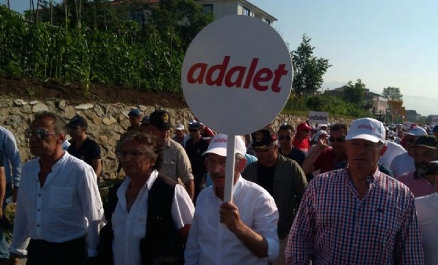 CHP'nin Ankara'dan başlattığı adalet yürüyüşü Sakarya'da devam ediyor. Heyet, geniş güvenlik önlemlerinin alındığı yürüyüşte, 15. Günün ilk mola yerine vardı.CHP Milletvekili Enis Berbereoğlu'nun tutuklanmasının ardından Güvenpark'tan başlatılan yürüyüş Sakarya'dan devam ediyor. CHP Genel Başkanı Kemal Kılıçdaroğlu'nun öncülüğünde Düzce Gümüşova bölgesinde başlayan yürüyüş yaklaşık üç saat sürdü. Yaklaşık 8 kilometreyi bulan yürüyüşte hava sıcaklığı 34 dereceyi buldu. Güzergah üzerinde kurulan stantlarda vatandaşlara ücretsiz su ve meyvesuyu ikram edildi. Tek şeritten kapatılan yolda uzun kuyruklar oluşurken, İzmir'den gelen bando takımı da yürüyüşe çaldıkları parçalarla destek verdi. Trabzon, Giresun ve diğer illerden de yoğun katılımın olduğu yürüyüşte jandarma ve polis güzergah boyunca geniş güvenlik önlemleri aldı. Heyet, yaklaşık üç saat süren yürüyüşün ardından ilk mola yerine vardı.(Ahmet Hamzaçebi - Sertaç Özdemir/İHA)