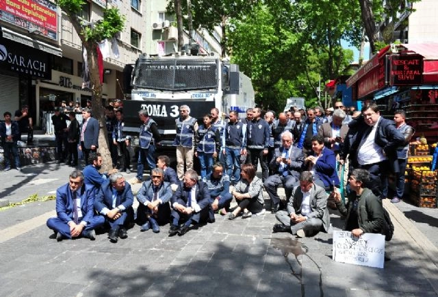 Ankara'da KHK ile ihraç edildikleri gerekçesiyle açlık grevi yapan Nuriye Gülmen ve Semih Özakça'nın tutuklanmasının ardından bazı CHP'li vekiller Karanfil Caddesi'nde oturma eylemine başladı. Vekiller ile polis ekipleri arasında kısa süreli arbede yaşandı. Başkent'te KHK ile ihraç edildikleri gerekçesiyle Yüksel Caddesi'ne açlık grevi yapan Nuriye Gülmen ve Semih Özakça hakkında tutuklama kararı verilmişti. Karar sonrası Karanfil Caddesi ile Yüksel Caddesi kesişiminde toplanan bir grup CHP'li milletvekili oturma eylemine başladı. Bu sırada polis ekipleri ile vekiller arasında kısa süreli gerginlik yaşandı. Yüksel Caddesi ve açılan sokaklar barikatlarla kapatıldı. Oturma eylemi yapan milletvekilleri ise ara ara oturdukları yerden kalkarak volta atma eylemi yaptı. Vekillerin oturma eylemi sürüyor.(Uğur Kan Yüksek - Ömer Çetin - Emre Yüzügüldü/İHA)