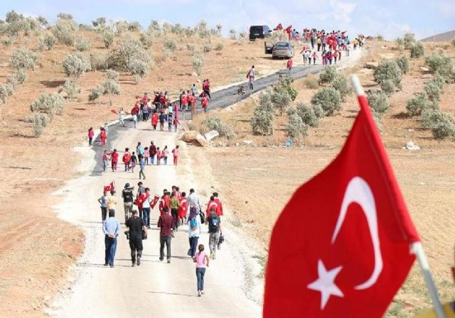 Hatay'da Türk Silahlı Kuvvetleri'nin (TSK) İdlib operasyonuna destek veren çocuklar, mahallelerinden 2 kilometre yol yürüyüp ulaştıkları İdlib sınırındaki karakolda Türk askerlerine koşarak Mehmetçiğe bayrak verdi.