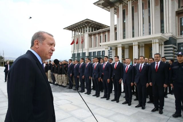 Cumhurbaşkanı Recep Tayyip Erdoğan, 10 Nisan Polis Bayramı nedeniyle Cumhurbaşkanlığı Külliyesinde görevli polislerle bir araya geldi.