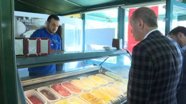 Cumhurbaşkanı Recep Tayyip Erdoğan, torunu Ahmet Akif Albayrak'a dondurma aldı.