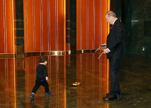 Cumhurbaşkanı Recep Tayyip Erdoğan, torunu ile Cumhurbaşkanlığı Külliyesinde oyuncak araba ile oynarken çekilmiş fotoğrafını paylaştı. Cumhurbaşkanı Recep Tayyip Erdoğan, torunu ile uzaktan kumandalı araba ile oynarken çekilen fotoğrafını sosyal paylaşım sitesi Twitter hesabından paylaştı. Erdoğan mesajında, "Çocuklarımızla birlikte geçirdiğimiz her saniye; hayatımıza, dünyamıza değer katar" ifadelerini kullandı.(Caner Ünver/İHA)