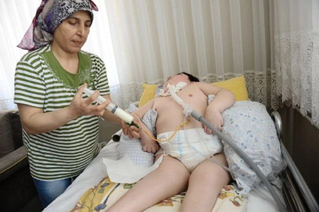 Bursa'da 7 yıldır yatalak olan ve elektriğe bağımlı halde yaşayan epilepsi hastası çocuğun tedavisinde kullanılan jeneratör arızalandı. Anne Hanife Güler, "Önce Allah'a, sonra Cumhurbaşkanıma güveniyorum" diyerek yardım istedi.Karacabey ilçesinde ikamet eden Güler ailesi, 7 yaşındaki epilepsi hastası Mert Ali için devlet büyüklerinden ve hayırseverlerden yardım bekliyor. 6 aylıkken ağır havale geçirip epilepsi hastalığına yakalanan ve o günden beri yatağa mahkum yaşayan Mert Ali, hayatını cihazlara ve ilaçlara bağlı yaşıyor. Mert Ali'nin 18 yaşında Gülşah isminde bir ablası, Eda isminde de ikiz kardeşi var.7 yıla yakın süredir oğlunun daha iyi şartlarda yaşaması için elinden geleni yapan anne Hanife Güler, cihazların fazla elektrik yaktığını dile getirerek, "Bakım paramız ancak ev kiramız ve elektrik faturasına gidiyor. Geçtiğimiz gün elektriklerimiz kesilecekti. Tebligat geldi. Doktorlar yaşadığı yere kadar bakacağımızı söyledi. Çocuğum solunum, oksijen, aspirasyon cihazına bağlı yaşıyor. Elektrik gücü ile yaşayan bir çocuk. Elektrik kesilince jeneratör var onu devreye geçiriyoruz. Ancak şu an o cihazımız da bozuk. Bunun bedeli 15 bin TL. Yarısını SGK karşılıyor. Yarısını bizim ödememiz lazım ama maddi imkanlarımız el vermiyor. Yetkililerden, devlet büyüklerinden, yardımseverlerden destek bekliyoruz" dedi."BEN AĞLADIĞIM ZAMAN O DA BENİMLE BERABER AĞLAR"Mert Ali'nin özel mama ile beslendiğini anlatan anne Hanife Güler, "Özel mamalarla beslenirken Mert Ali'de ödem oluştu. Kilo almaya başlayınca mamaları kestiler. Biz de evdeki besinleri sıvı haline getirerek midesinden besliyoruz" diye konuştu.Güler ailesinin en büyük kızları Gülşah Güler ise, çocuk gelişimi bölümünü bırakmak zorunda kaldığını dile getirerek, kardeşinin farklı bir çocuk olduğunu belirtti. Güler, "Biz diyoruz ki onunki hep en iyisi, en güzeli olsun. Çabalarımız bunun içindir. Ben kardeşime hasta gözü ile bakmıyorum. Benimle birlikte büyüdü. Ben ağladığım zaman o da benimle beraber ağlar. Ben güldüğüm zaman o benim mutluluğumun farkına varıyor. Diyaloğumuz hiç olmadı ama tepkileri ile anlaşıyoruz. O derdini bizlere anlatıyor" ifadelerini kullandı.Mert Ali'nin ikiz kardeşi Eda Güler de kardeşi ile oynamak istediğini söyleyerek, "Kardeşim ile okula gitmek istiyorum. Yardım etsinler bize. Kardeşimin iyileşmesini istiyorum" dedi(Samet Doğru - Yasin Keskin / İHA)