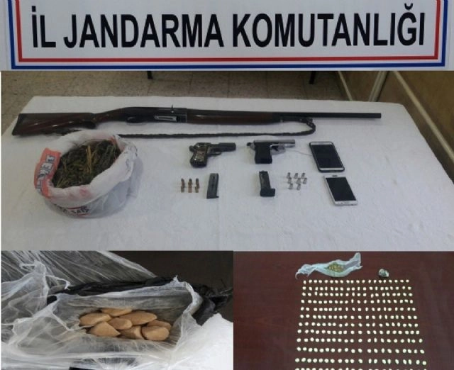 Denizli İl Jandarma Komutanlığı tarafından uyuşturucu tacirlerine yönelik 8 ayrı ilçede düzenlenen operasyonda gözaltına alınan 32 kişiden 11'i tutuklandı. Denizli'de, İl Jandarma Komutanlığı Asayiş Timleri ile Kaçakçılık ve Organize Suçlarla Mücadele Müdürlüğü Narkotik Timleri, uyuşturucu ticareti yapıldığı ihbarı üzerine Pamukkale, Acıpayam, Babadağ, Buldan, Honaz Kale, Sarayköy ve Tavas ilçelerinde operasyon düzenledi. Ekiplerin Temmuz ayı içerisinde 8 ilçede 12 farklı adrese düzenlediği operasyonda 32 kişi gözaltına alındı.Operasyonlarda baskın yapılan yerlerde yapılan aramalarda, 52 gram eroin, 97 gram metamfetamin, 417 adet extacy hap, 1 kilo 820 gram kubar esrar, 874 kök kenevir bitkisi, 2 adet ruhsatsız tabanca, 9 adet tabanca mermisi, 1 adet ruhsatsız av tüfeği, ele geçirildi.Öte yandan gözaltına alınan 32 şüpheliden 11'i tutuklandı.(Medeni Topaloğlu/İHA)