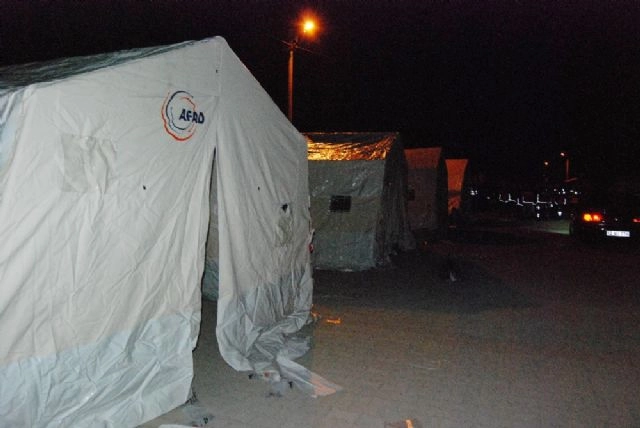Adıyaman'ın Samsat ilçesinde meydana gelen depremin ardından evleri yıkılan ve geceyi dışarıda geçirmek zorunda kalan vatandaşlar için çadırlar kurulmaya başlandı. Adıyaman'ın Samsat İlçesinde yaşanan depremin ardından bölgeye AFAD tarafından çok sayıda çadır gönderildi. Tırlarla ilçeye getirilen çadırlar evleri yıkılan ve geceyi dışarıda geçirmek zorunda kalan vatandaşlar için şehrin değişik noktalarında ve köylerde kurulmaya başlandı. Artçı sarsıntılar nedeniyle bazı vatandaşlar ilçeyi terk edip geceyi il merkezindeki yakınlarının yanında geçirirken ilçede kalmak zorunda olan vatandaşlar ise geceyi araçlarında ve AFAD ekipleri tarafından kurulan çadırlarda geçirecek.(Fahrettin Çelik - Hüseyin Türkoğlu - Şinasi İnan /İHA)