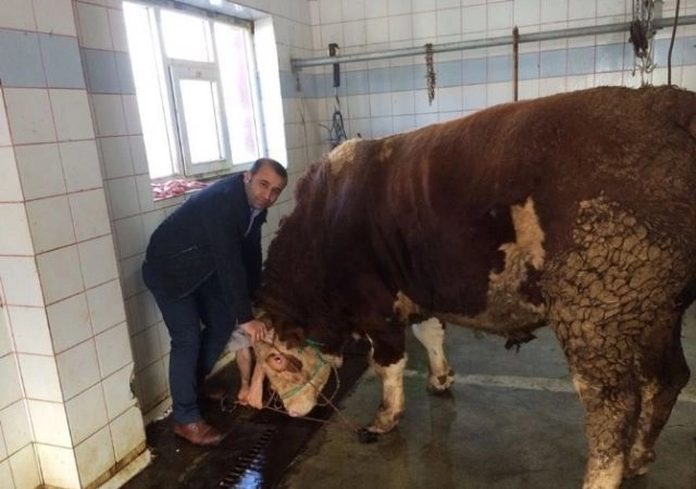 Bolu'da bir çiftçi tarafından yetiştirilen Smental cinsi dev dana görenleri şaşkına çevirdi.