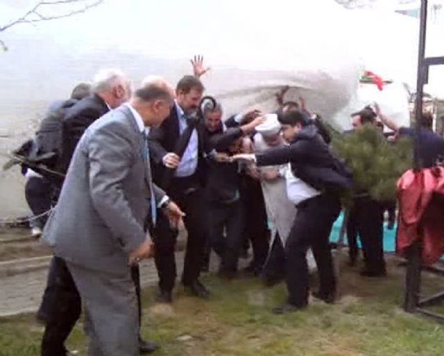Van'da düzenlenen temel atma töreninde aniden bastıran fırtına nedeniyle platformun kısmen çökmesi sonucu Diyanet İşleri Başkanı Mehmet Görmez'in de aralarında bulunduğu çok sayıda davetli adeta ölümden döndü.