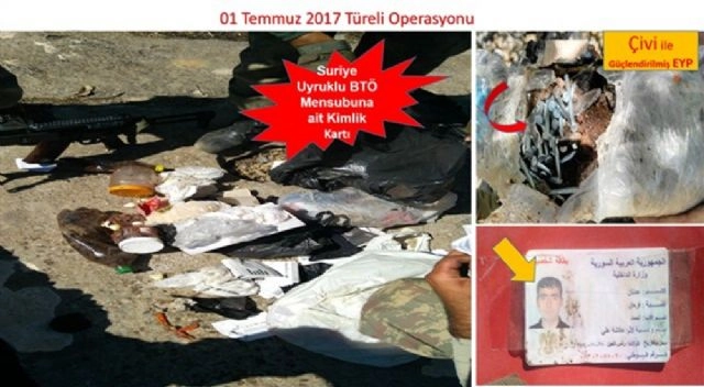 Diyarbakır'da terör örgütü PKK'ya yönelik yürütülen operasyonda çıkan çatışmada Suriye uyruklu 1 terörist öldürüldü. Diyarbakır Valiliğinden yapılan açıklamada, "PKK/KCK terör örgütünün faaliyetlerinin deşifresine ve engellenmesine yönelik sürdürülen haber alma çalışmalarında, sözde Amed Eyaleti bölgesinde faaliyet yürüten bir grup bölücü terör örgütü (BTÖ) mensubunun Lice ilçesi Türeli köyü mücavirinde bulunan sığınakta barındığı yönünde elde edilen istihbari bilgiye istinaden 30 Haziran 2017 Cuma günü saat 17.00'den itibaren icrasına başlanılan operasyonel faaliyet kapsamında 1 Temmuz 2017 Cumartesi günü bir grup BTÖ mensubu ile sağlanan temas neticesinde 1 terörist, 1 adet AK-47 Kaleşnikof piyade tüfeği, 2 adet el bombası, 90 adet AK-47 Kaleşnikof piyade tüfeğine ait fişek, 3 adet AK-47 Kaleşnikof piyade tüfeğine ait şarjör ve 1 adet el telsizi ile birlikte ölü olarak ele geçirilmiştir" denildi.Operasyonda tespit edilen bir mağarada 18 adet fünyeleri üzerinde kullanıma hazır mayın/el yapımı patlayıcı (EYP), 250 kilogram amonyum nitrat, 1 adet büyük tüp, 1 adet piknik tüpü, 2 adet kazma, 1 adet kürek, 4 adet kütüklük, 2 adet streç film, 2 adet silikon, 1 adet yemek kazanı, 5 metre kablo, 1 adet ampermetre, 1 adet mavi branda, 1 adet katır heybesi, 1 adet şemsiye, 1 adet met, 1 adet Muş ili haritası ve gıda malzemesi ele geçirildiği belirtildi. Mayın/EYP yapımında kullanılan malzemeler ile diğer malzemelerin Cumhuriyet Savcılığının talimatı ile yerinde imha edildiği bildirildi.