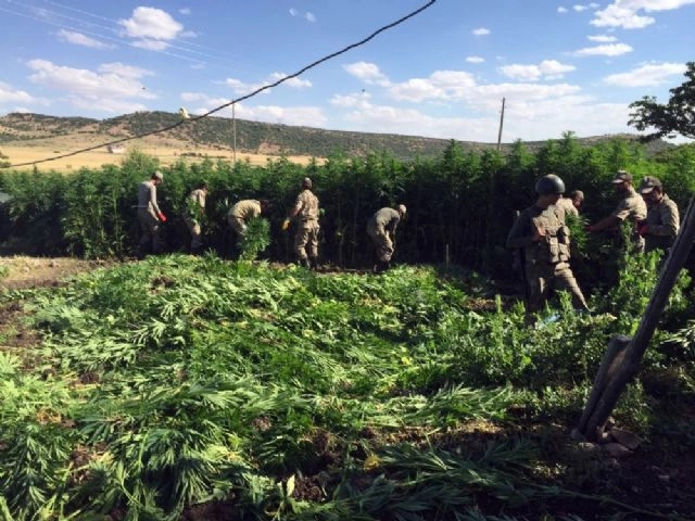 Diyarbakır'ın 6 ilçesine bağlı 104 köyde ilan edilen sokağa çıkma yasağının ardından bin 528 kilometrekarelik alanda sürdürülen operasyonlarda PKK'ya darbe üstüne darbe vuruluyor. Asker ile polisin beraber düzenlediği operasyonlarda teröristlerin kullandığı mağara ve sığınaklar teker teker imha ediliyor. Diyarbakır Valiliği tarafından yapılan açıklamada 6 ilçeye bağlı 104 köy ve mezrada toplam bin 528 kilometrekarelik alanda aralarında üst düzey örgüt yöneticilerin de bulunduğu değerlendirilen bölücü terör örgütü mensuplarını etkisiz hale getirmek, bölücü terör örgütü ile yasa dışı uyuşturucu üretimi ve ticareti yapanlar arasında var olan bağı somut deliller ile ortaya koymak, operasyon bölgesi içerisinde saklanan uyuşturucu maddeleri ve bunları gizleyenleri bularak adalete teslim etmek, bölgede bulunan yerleşim yerlerinde tespit edilen işbirlikçiler ve aranan şahısları yakalamak maksadıyla, 14 Komando Taburu, bin 199 Polis Özel Harekat personeli ve bin 442 Güvenlik Korucusu olmak üzere toplam 7 bin 742 güvenlik personelinin katılımıyla 28 Mayıs 2017 Pazar günü saat 22.00'dan itibaren başlatılan Bayrak-54 Şehit Jandarma Yüzbaşı Fuat Oğuzcan Müşterek Birlik Operasyonu'nun devam ettiği belirtildi. Açıklamada "16 Haziran 2017 Cuma günü icra edilen operasyon kapsamında; emniyet müdürlüğü personelince müşterek oluşturulan 33 yol kontrol noktasında (YKN) yapılan kontrol neticesinde; 49 araç ve 271 şahsın sorgulaması yapılmış, yapılan sorgulamalar sonucu yoklama kaçağı olduğu tespit edilen 3 şahıs yakalanarak, 1111 Sayılı Askerlik Kanunu gereğince tebligat yapılmasını müteakip serbest bırakılmış, 2'si 'uyuşturucu ve uyarıcı madde ticareti yapma veya sağlama' suçundan, 1'i 'bölücü terör örgütü işbirlikçisi' olarak faaliyet yürütmekten aranma kaydı bulunan toplam 3 şahıs gözaltına alınmıştır" denildi.SIĞINAK VE MAĞARALAR İMHA EDİLDİValilik tarafından yapılan açıklamada, adli makamlardan alınan kararlara istinaden 13 köy ve 2 mezrada toplam 88 ev ve eklentilerinde adli arama faaliyeti icra edildiği belirtildi. Kırsalda yapılan aramalarda ise 1 mağara ve 3 sığınak tespit edildiğinin belirtildiği açıklamada, "Bölücü terör örgütü mensuplarına ait 1 mağara, 3 sığınak içinde ve çevresinde yapılan detaylı aramada; 6 adet jelikan bidon, 2 adet muhtelif marka tabanca şarjörü, 6 çift mekap ayakkabı, 50 kilogram un, 5 kilogram makarna, 3 kilogram reçel, 4 adet 500 mililitrelik serum, muhtelif yiyecek maddeleri ve bir miktar yaşam malzemesi ele geçirilmiş, Cumhuriyet Savcılığının talimatı gereğince tespit edilen mağara ve sığınaklar kullanılmaz hale getirilmiş, sığınaklar içerisinde bulunan çok sayıda örgütsel doküman ile yaşam ve giyim malzemeleri yerinde imha edilmiştir" ifadeleri kullanıldı.TESPİT EDİLEN EYP KONTROLLÜ OLARAK PATLATILDIValilik açıklamasında, teröristler tarafından tuzaklanan bir EYP'nin tespit edilerek kontrollü olarak patlatıldığı bildirildi. Açıklamada, "Silvan iiçesi Dolaplıdere köyü kuzeyindeki Erkenciler mezrası yol ayrımı mevkiindeki karayolu kenarına 1 adet 12 kilogramlık tüp içerisine yaklaşık 50 kilogram amonyum nitrat ve şeker ile güçlendirilerek hazırlanmayı müteakip yerleştirilmiş olan EYP düzeneği operasyon birliklerince tespit edilmesi sonrasında Patlayıcı Madde İmha Timi tarafından yerinden çıkarılarak, emniyetli bir bölgede tahrip edilmiştir. Narko-terörizmle mücadele kapsamında; 121 kilo 75 gram kubar, 239 kilo 9 gram toz olmak üzere toplam 361 kilo 65 gram uyuşturucu maddesi ile 196 bin 870 kök kenevir bitkisi ele geçirilmiş olup, kenevir bitkileri numune alınmasını müteakip, Cumhuriyet Savcılığının talimatı gereğince yerinde imha edilmiş, kubar maddesi muhafaza altına, 4 şahıs ise gözaltına alınmıştır. Bölgemizde yaşayan vatandaşların huzur ve güvenliğinin sağlanması ve teröristle mücadele kapsamında yürütülen operasyonel faaliyetlere artan bir azim ve kararlılıkla devam edilmektedir" denildi.