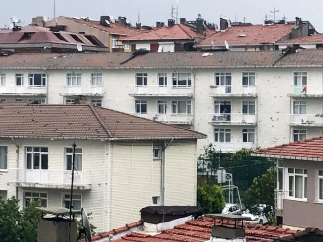 Üsküdar'da etkili olan dolu yağışı binaları deldi, araçlarda hasar oluştu.