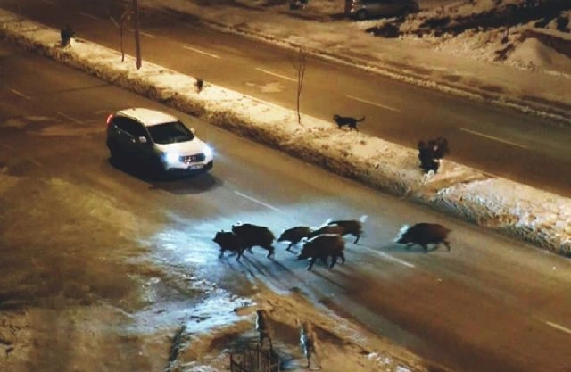 Tunceli'de kış mevsimi nedeniyle yiyecek bulmakta güçlük çeken yaban domuzları karayoluna indi. Kış mevsimi nedeniyle aç kalan yaban domuzları, Tunceli Merkez Atatürk Mahallesi, Elazığ karayolu üzerine kadar indi. Çöpleri karıştıran yaban domuzlarını, sokak köpekleri rahat bırakmadığı görülürken, karayolunu kullanan sürücülerin durarak domuzlara yol verdi. Domuzlar bir süre sonra, dağlık alana doğru giderek gözden kayboldu.(Ercan Topaç / İHA)