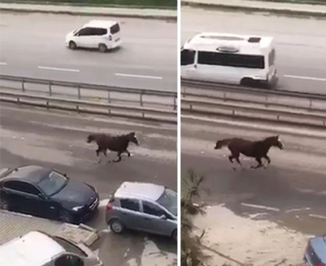 İstanbul'da E-5 karayolu yan yolda başıboş halde dört nala koşan at görenleri şaşkına çevirdi. Atın koşuşunu görüntüleyen vatandaşların, durumu at yarışı anlatır gibi anlatması ilgi çekti.