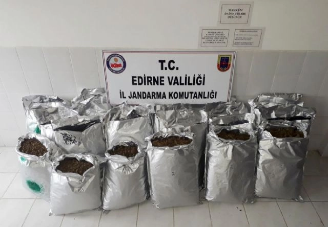 Edirne'de, jandarma ve hudut birliklerince yapılan ortak operasyonda Yunanistan üzerinden ülkeye sokulan 12 çuval içerisinde 1 milyon 107 bin lira değerinde 123 kilogram esrar ele geçirildi.