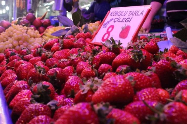 Ekim ayı gelmesine rağmen pazarlarda tarla çilekleri tezgahlarda yerini almaya devam ediyor.