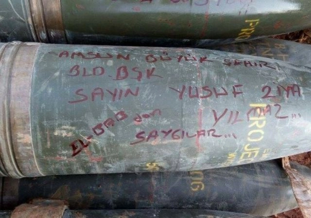 Fırat Kalkanı Harekatı kapsamında Suriye El Bab'ta görevli Samsunlu bir asker, terörle mücadelede kullandıkları bombalar üzerine Samsun Büyükşehir Belediye Başkanı Yusuf Ziya Yılmaz'ın ismini yazarak selam gönderdi.