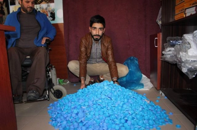 Siirt'te komşusunun engelli çocuğunun durumundan etkilenen genç, çocuğa tekerlekli sandalye alabilmek için esnaf ve komşularının yardımıyla 50 bin mavi kapak topladı.