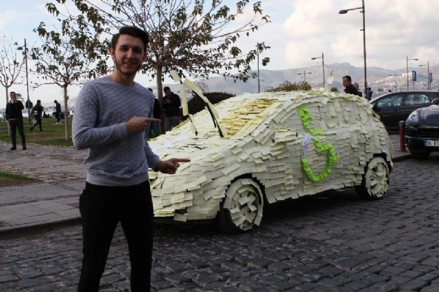 İzmir'de engelli rampasına park eden şahıs, aracının yanına geri döndüğünde otomobilinin not kağıtlarıyla kaplandığını görünce şoke oldu. Engellilere karşı duyarsız davranan şahsın arabasını, 'post it' denilen not kağıtlarıyla kaplayan Youtuber Semih Uyulgan'a, çevredeki vatandaşlar da destek verdi. İzmir'in en işlek yerlerinden biri olan Konak ilçesine bağlı Alsancak semti, ilginç bir 'ders verme' olayına sahne oldu. Çektiği videolarla çok sayıda izleyici kitlesine ulaşan Semih Uyulgan isimli Youtuber, bu kez de engelli rampalarına park eden araçları markajına aldı. Uyulgan, Kordon boyunda engelli rampasına park eden bir aracı 'post it' denilen not kağıtlarıyla kaplamaya başladı. Uyulgan'a, bir süre sonra çevredeki vatandaşlar da yardım etti. Kısa süre içerisinde onlarca kişi şahsın otomobilini not kağıtlarıyla kaplarken, yoldan geçen vatandaşlar da o anları cep telefonlarına kaydetti. Baştan aşağıya kağıtlarla kaplanan otomobilin son halinde ise engelli sembolü ortaya çıkartıldı.Otomobilin yanına gelen araç sahibi ise gördüğü manzara karşısında şaşkınlığını gizleyemedi. Videoda yüzü gizlenen araç sahibi, önce aracındaki kağıtları sökmeye başladı, ardından "Bunu siz mi yapıyorsunuz kardeşim? Verirsin plakayı çektirirsin arabayı" dedi. Şahıs, sadece şoför koltuğuna denk gelen bölümlerdeki kağıtları sökerek alandan uzaklaştı.(Ceren Atmaca /İHA)