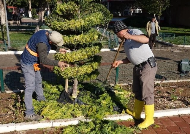 Mersin'in Erdemli İlçe Belediyesince, ilçe genelinde bulunan park ve yeşil alanlara rutin bakımlar sürüyor. Olumsuz hava şartlarından dolayı etkilenen yerlerin temizlik ve tadilatları yapılırken, ağaçlar da budanıyor.
