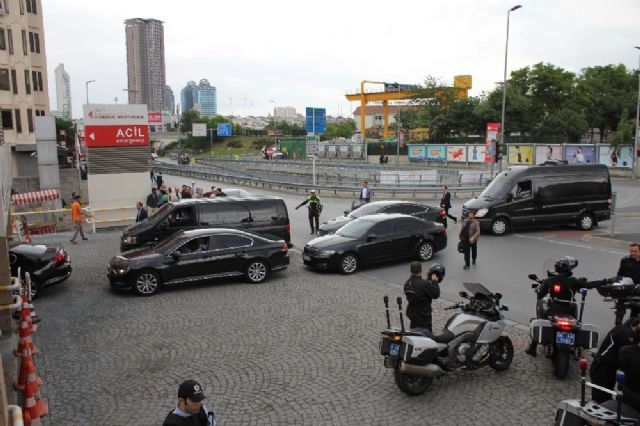 Cumhurbaşkanı Recep Tayyip Erdoğan, geçtiğimiz günlerde rahatsızlanarak tedavi altına alınan İstanbul Emniyet Müdürü Mustafa Çalışkan'ı ziyaret etti. Cumhurbaşkanı Erdoğan, Kısıklı'daki Cumhurbaşkanlığı konutundan saat 15.40 sıralarında çıkarak sürpriz bir ziyaret gerçekleştirdi. Erdoğan'ın geçtiğimiz günlerde rahatsızlanarak Şişli'deki özel bir hastanede tedavi altına alınan İstanbul Emniyet Müdürü Mustafa Çalışkan'ı ziyaret ettiği öğrenildi. Yaklaşık 20 dakika süren ziyarette Erdoğan, Çalışkan'ın doktorlarından da bilgi aldı. Daha sonra hastaneden ayrılan Cumhurbaşkanı Erdoğan'ın ziyareti esnasında havadan polis helikopterinin, karadan ise polislerin geniş güvenlik önlemi aldığı görüldü.(Doğan Can Cesur / İHA)