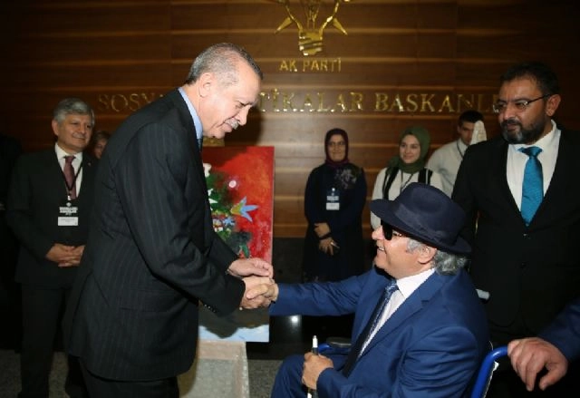 Cumhurbaşkanı Recep Tayyip Erdoğan, görme engelli ressam Eşref Armağan'ın resim sergisini gezdi. Cumhurbaşkanı Erdoğan, Engelliler Haftası programı öncesinde AK Parti Genel Merkezi'nde açılan Eşref Armağan resim sergisini gezdi. Doğuştan görme engelli olan ressam Eşref Armağan'ın sergisinde Konya Büyükşehir Belediyesi Hafif ve Orta Down Otistik, Hafif ve Orta Düzey Zihinsel Engelli Özel Gençler Mehter Takımı tarafından mini bir konser verildi.Ressam Eşref Armağan, Cumhurbaşkanı Erdoğan'a sergiyi gezdirip çizdiği resimlerle ilgili bilgiler verdi. Erdoğan ve ressam Eşref Armağan arasında esprili bir sohbet gerçekleşirken, serginin sonunda mehter takımı tarafından mini bir konser verildi. Erdoğan, konser boyunca marşlara eşlik etti ve ardından da mehter takımı üyeleri ile sohbet etti.
