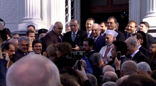Demir Kilise'nin açılış töreninde Cumhurbaşkanı Erdoğan'ın ile bir foto muhabiri arasında yaşanan diyalog güldürdü. Balat'ta 1898 yılında demirden inşa edilen ve tek kilise olma özelliğini taşıyan Bulgar Sveti Stefan Kilisesi (Demir Kilise), 7 yıl süren restorasyon çalışmasının ardından bugün yapılan törenle açıldı. Törene Cumhurbaşkanı Erdoğan'ın yanı sıra Başbakan Binali Yıldırım, Bulgaristan Başbakanı Borisov, Dışişleri Bakanı Mevlüt Çavuşoğlu, Kültür ve Turizm Bakanı Numan Kurtulmuş, Enerji ve Tabii Kaynaklar Bakanı Berat Albayrak, AK Parti Genel Başkan Yardımcısı Hayati Yazıcı, AK Parti İstanbul İl Başkanı Selim Temurci, İstanbul Büyükşehir Belediye (İBB) Başkanı Mevlüt Uysal, Fatih Belediye Başkanı Mustafa Demir, AK Parti İstanbul Milletvekili Ahmet Hamdi Çamlı, Bulgar Eksharlığı Ortodoks Kilisesi Vakfı Başkanı Vasil Liaze, Türkiye ve Bulgaristan'daki dini cemaat liderleri katıldı.ERDOĞAN'DAN "SEN DE ÇEKEMEZSEN KİMSE ÇEKEMEZ" ESPRİSİTörende konuşmaların ardından Cumhurbaşkanı Erdoğan ve beraberindekiler kilisenin önüne geldi. Burada Erdoğan beraberindekilerle birlikte kurdele keserek kilisenin açılışını gerçekleştirdi. Ardından içeriye giren protokol kiliseyi gezdi. Erdoğan ise yetkililerden kilise ve yapılan restorasyon hakkında bilgi aldı. Kurdele kesimi esnasında ise Cumhurbaşkanı Erdoğan ile bir foto muhabiri arasında yaşanan diyalog çevredekileri güldürdü. Erdoğan kendilerini görüntüleyen muhabirlere, "Çekebildiniz mi" diye sordu. Muhabirler de, alanın darlığından dolayı "çekemedik" diye yanıt verdi. Bunun üzerine Erdoğan'ın, "Sen de çekemezsen kimse çekemez" demesi çevredekileri güldürdü.(Doğan Can Cesur/İHA)