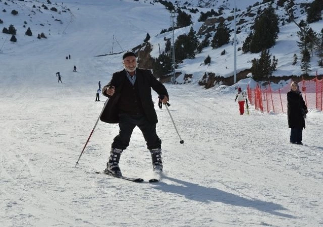Ergan Kayak Merkezinde 4 çocuk babası 76 yaşındaki dede, düşe kalka kayak yapmayı öğrendi.Ergan Kayak Merkezinde kayak sezonunun açılmasıyla tüm kayak severler Ergan Dağı'na koştu. Çeşitli sporcuların yanı sıra aileleri ile birlikte kayak yapmaya Ergan Kayak Merkezine akın eden vatandaşların içerisinde 76 yaşındaki Mustafa Bozdere tek başına yardım almadan kayak yapması herkesi şaşkına çevirdi. Kayak merkezinde kendisini gören vatandaşlardan olumlu tepki alan Mustafa Bozdere sık sık düşmesine rağmen pes etmeyerek kayak yapmaya devam etti.4 çocuk babası 76 yaşındaki Mustafa Bozdemir komşusunun tavsiyesi üzerine kayak yapmaya heves ettiğini belirterek, kayak yapmanın ilmini bildikten sonra zor olmadığını söyledi.Vatandaşların şaşkın bakışları içinde kayak yapmanın tadını çıkaran Mustafa Bozdemir, yaşıtlarına seslenip, kendisinden ibret almaları gerektiğini ifade etti.
