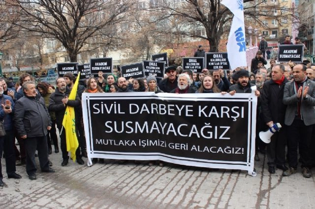 Kanun Hükmünde Kararnameyle (KHK) Anadolu Üniversitesi ve Eskişehir Osmangazi Üniversitesinden ihraç edilen akademisyenler Eskişehir'de eylem yaptı.