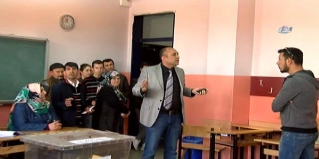 Eskişehir'de 1331 numaralı sandığın sorumlu başkanı, devam eden oy kullanma işlemiyle ilgili görüntü çekmek isteyen İHA muhabirlerini engelledi.