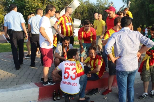TFF 1. Lig'den Süper Lig'e yükselecek son takımın belli olacağı Eskişehirspor-Göztepe maçı öncesi, eğlenen Göztepe taraftarlarından bir kişi, ayağına cam kırığının isabet etmesi sonucu yaralandı.