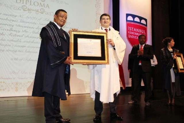 Etiyopya Federal Demokratik Cumhuriyeti Cumhurbaşkanı Dr. Mulatu Teshome Wirtu'ya İstanbul Kemerburgaz Üniversitesi (İKBU) tarafından ekonomi dalında fahri doktora unvanı verildi.