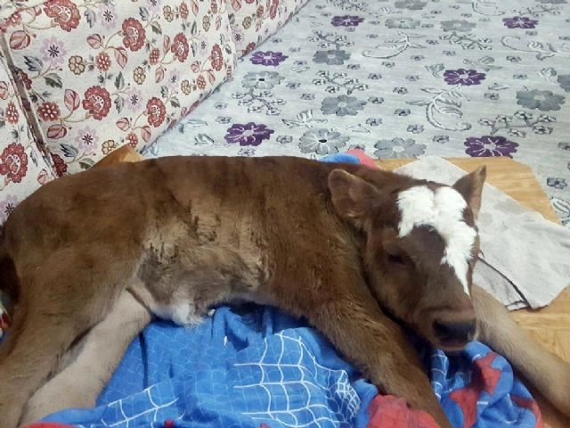 Şanlıurfa'nın Siverek ilçesinde kış ortasında doğan buzağı, soğuk havadan etkilenince sahibi tarafından evde beslenmeye başladı. Battaniyeye sarılarak, soba kenarında biberonla beslenen buzağı, soğuk nedeniyle 5 gün hayatta kalabildi.