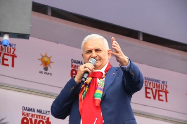 Başbakan Binali Yıldırım, terör örgütlerinin referandumdan 'hayır' çıkması için adeta kendilerini parçaladıklarını ama başaramayacaklarını söyledi. Yıldırım, ''Evet çıkarsa biz biteriz' diyorlar. Evet çıkacak, siz de biteceksiniz' dedi.