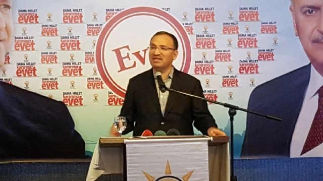 Adalet Bakanı Bekir Bozdağ, '16 Nisan'da sandıkta 'evet'leri patlamalıyız. Öyle patlatmalıyız ki Merkel Almanya'dan duyduğunda o sesle yerinden fırlamalı. 'Yine mi Türkler?' diyebilmeli' dedi.