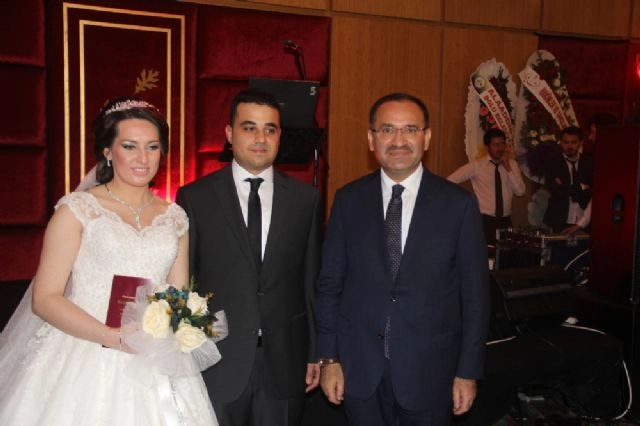 Bolu'da bir otelde düzenlenen törenle hayatlarını birleştiren HSYK Başkan Vekili Mehmet Yılmaz'ın oğlu Ömer Yılmaz ile Ecem Eser'in düğün töreninde çiftlerin evlilik cüzdanlarını Adalet Bakanı Bekir Bozdağ verdi.